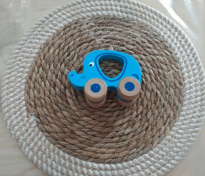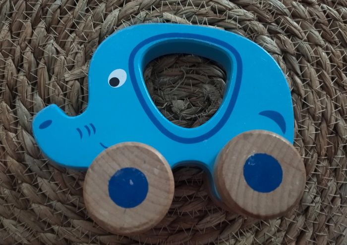 Jouet en bois véhicule éléphant sur des roulettes A beaucoup servi donc peinture abîmée à plusieurs endroits #jouetjustine8059