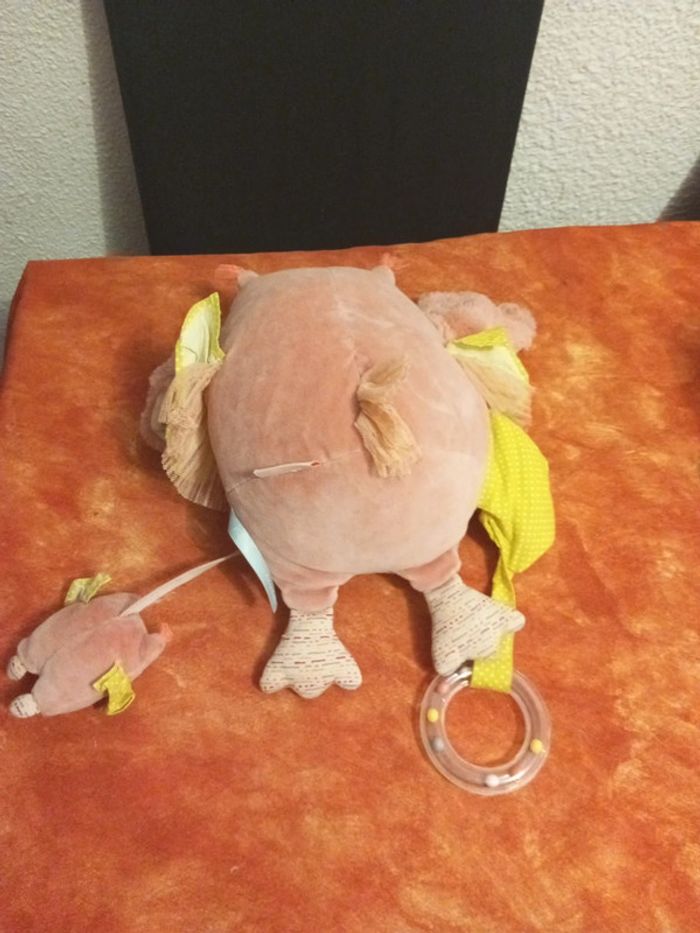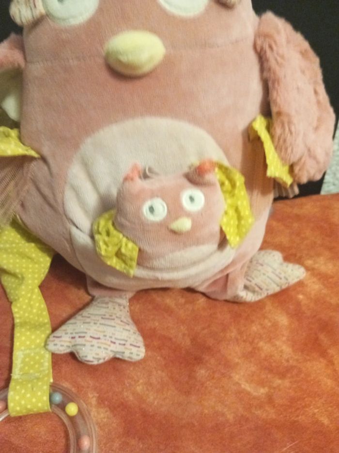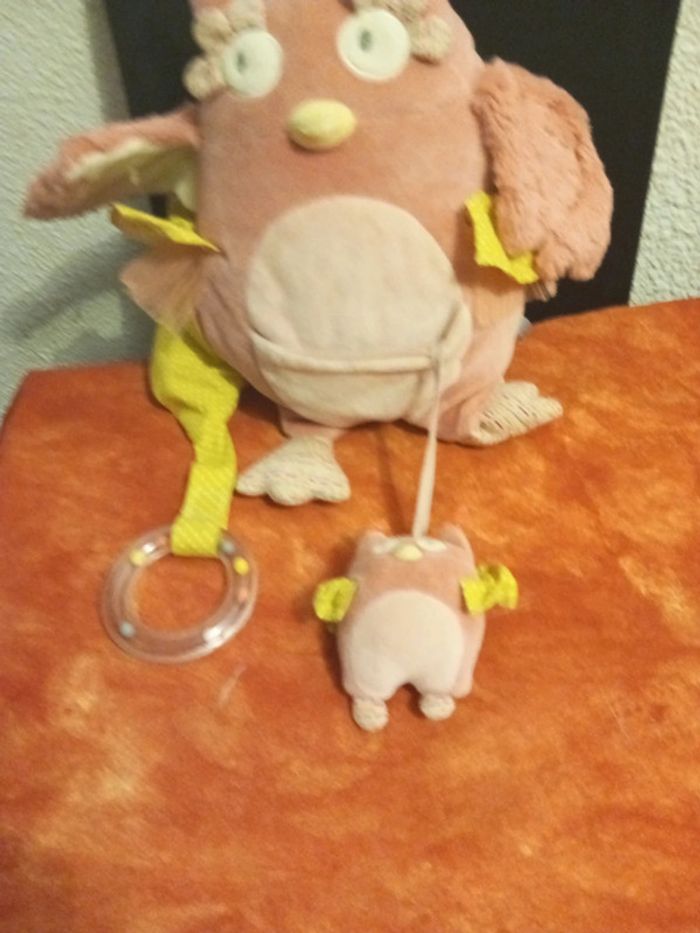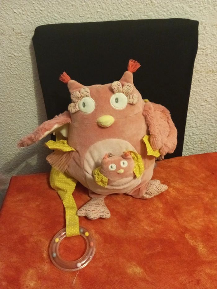 Hibou chouette d'activité mademoiselle Ribambelle de Moulin Roty En très bon état, vendu comme sur les différentes photos. Dans mon dressing, il y a d'autres peluches, des Petshop, des Lego Duplo, des Playmobil, des Barbie et beaucoup de jeux et jouets vintage #Nourriture06_doudou