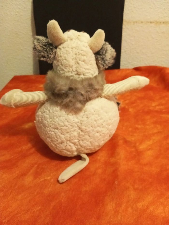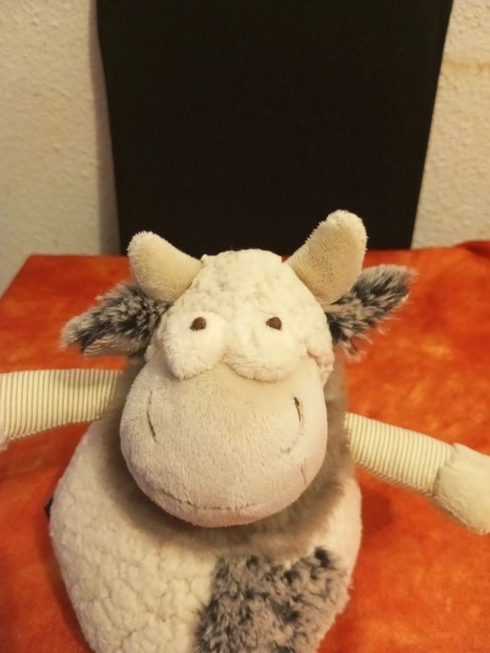 Très jolie vache beige et grise en mode hiver de la marque Mars & more, Très bon état, vendu comme sur les photos N'hésitez pas à visiter mon dressing, il y a des Duplo, des Playmobil, des Barbie et beaucoup de peluches et jouets vintage #Nourriture06_doudou