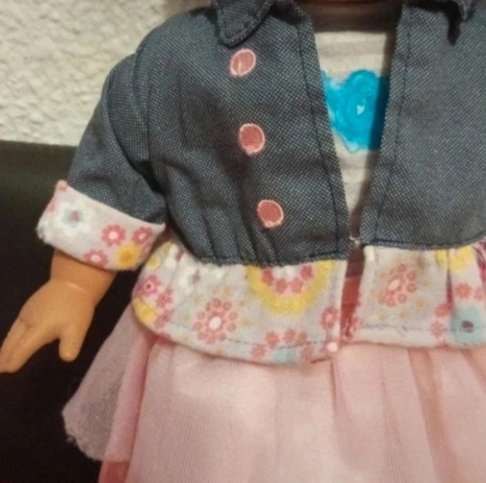Très jolie poupée avec robe à tutu et gilet. En très bon état, les cheveux sont à démêler et coiffer, vendu comme sur les différentes photos D'autres poupées sur mon profil ainsi que des Duplo, des Petshop, des peluches vintage, des barbie et des Playmobil