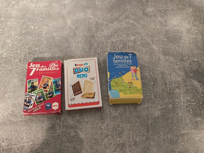 Lot 3 jeux carte 2 jeux 7 famille manque juste une carte et 1 jeux mémo Kinder il est complet