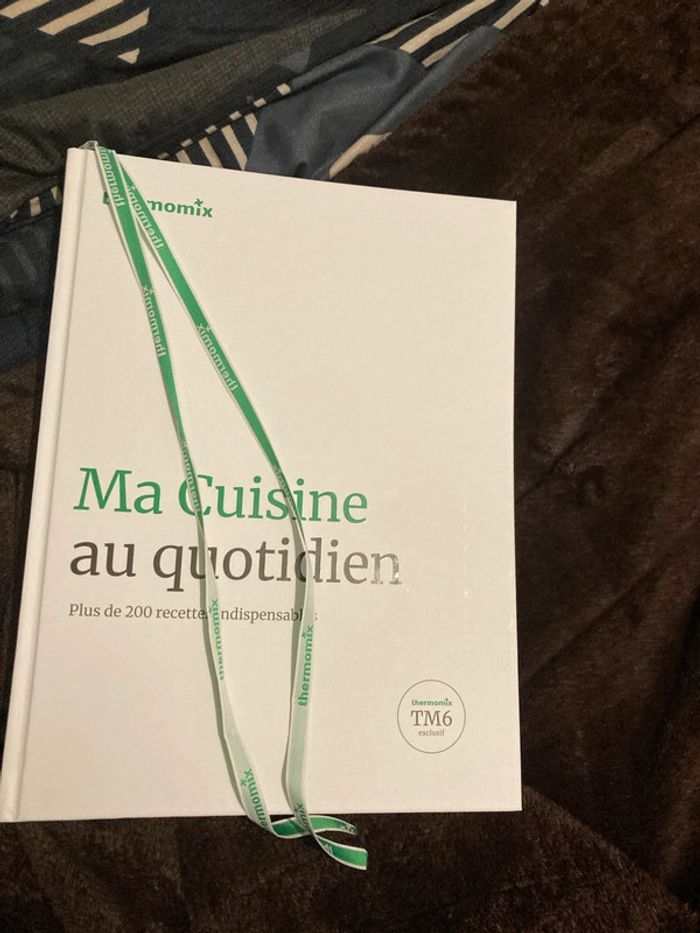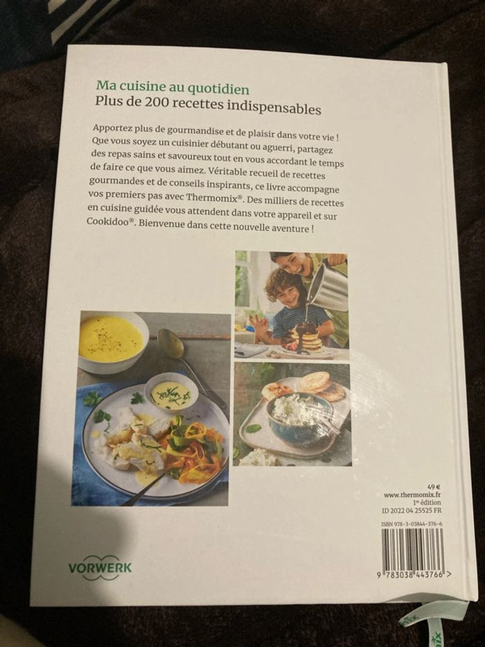 Livre de cuisine du Thermomix, ma cuisine au quotidien, plus de 200 recettes indispensables pour Thermomix. The M6 exclusive neuf sans étiquette n’a jamais été ouvert ni été utilisé. Prix du livre 49 €.