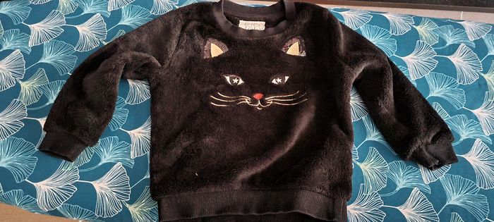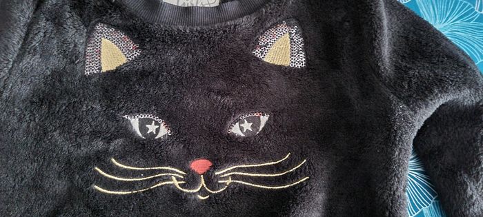 vend pull polaire fille avec broderie tête de chat avec des paillettes bon état