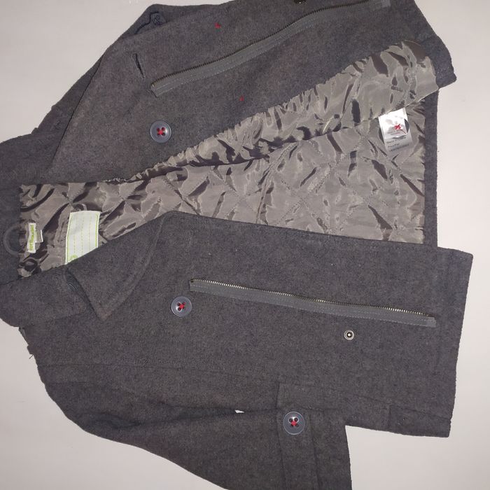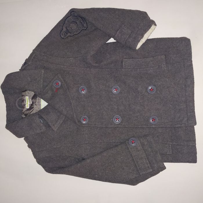 Manteau caban Vertbaudet taille 6 ans, couleur gris. Fermeture bouton en haut une pression en bas et fermeture éclaire.