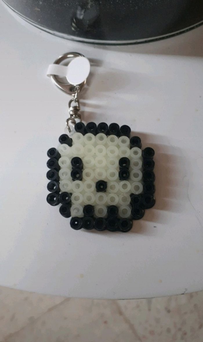 Porte clé tête de mort phosphorescent fait à la main en perles à repasser
