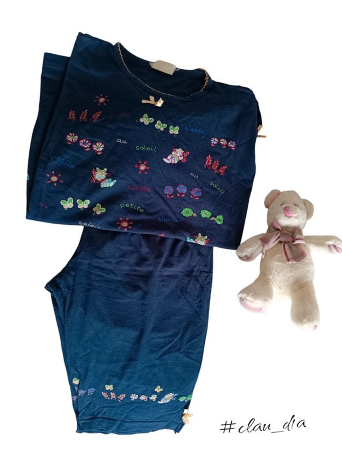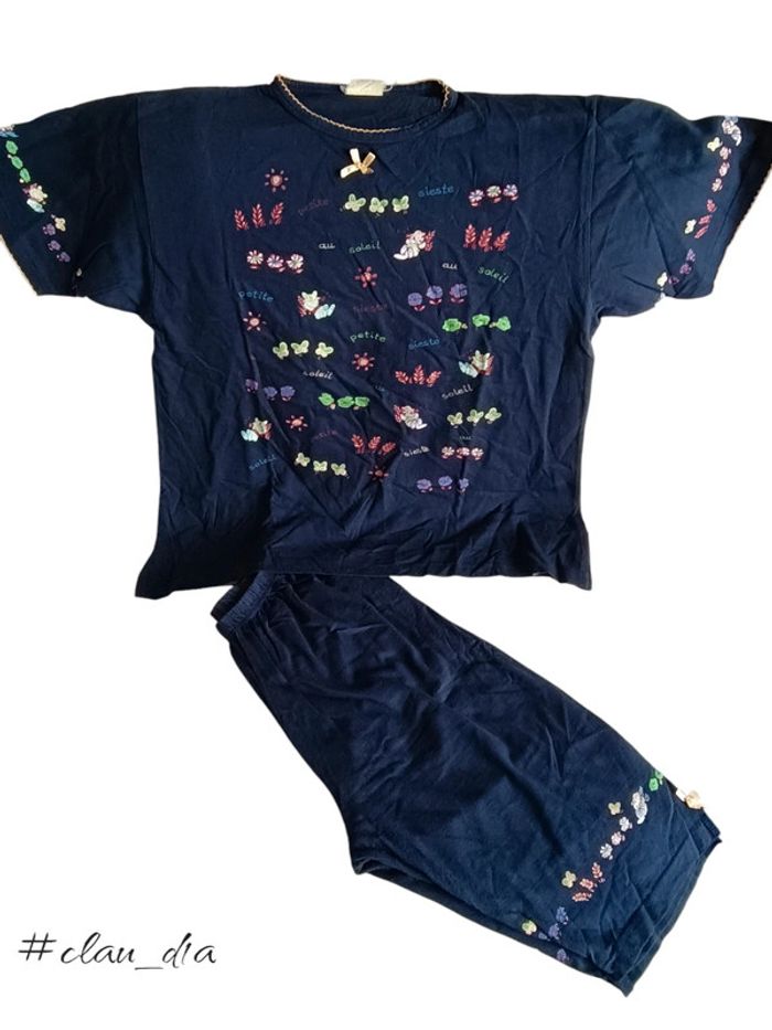 Pyjama tee-shirt et pantacourt 100% coton Taille 42/44 Très bon état Couleur bleu marine avec petits dessins ✅ Envoi rapide en petit format ❌ Je n'accepte pas les retours #clau_d1a