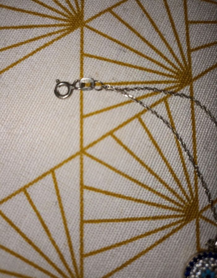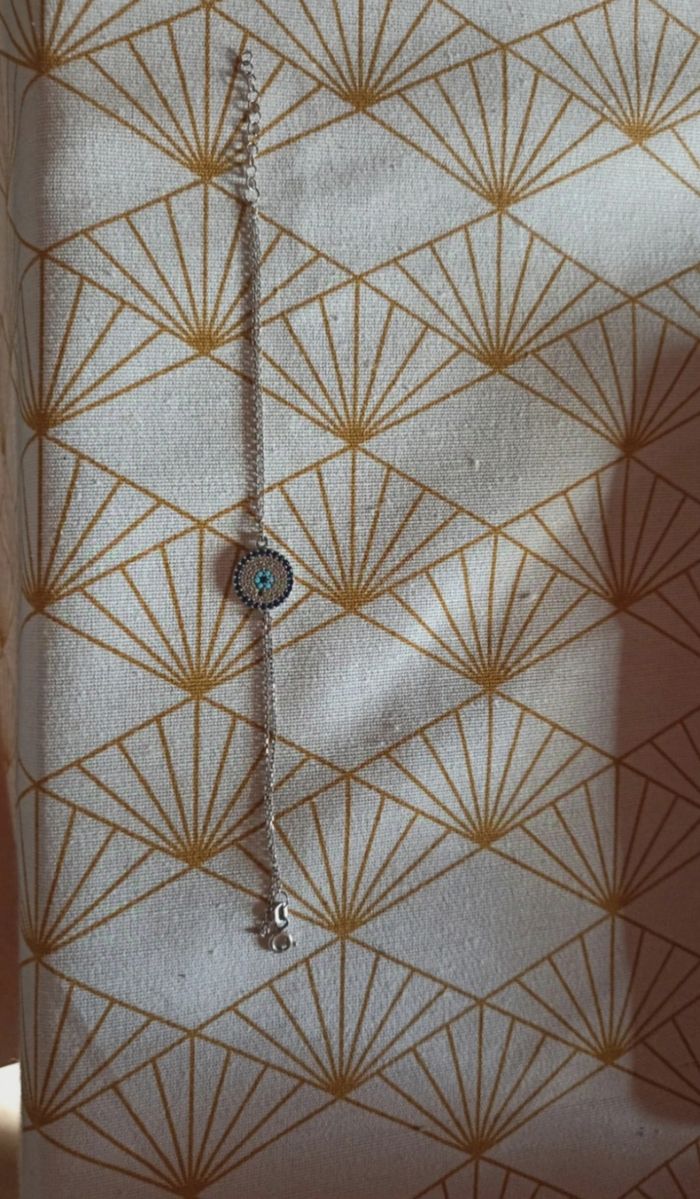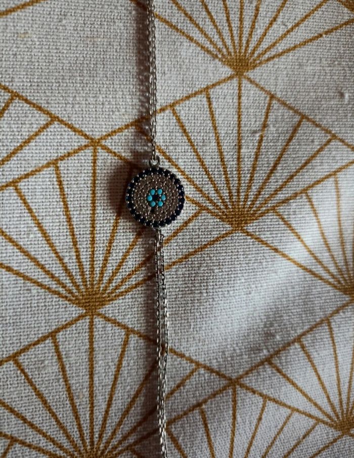Joli bracelet en argent avec des pierres noires blanches et bleues. Poinçon argent 925 visible. Idéal pour un cadeau. Sera livré avec une pochette cadeau.