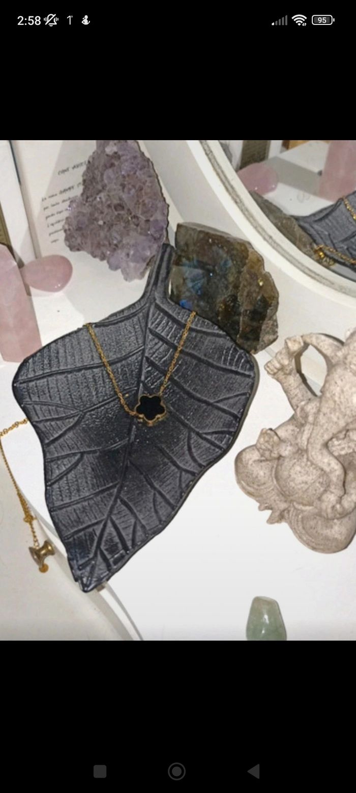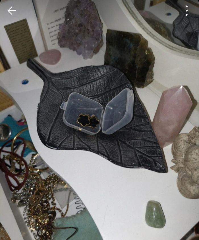 Très joli ensemble Trèfle, inspiration d un grand bijoutier. Lot comprenant un collier et les boucles d oreilles. Noir et doré. Neuf, jamais porté. Idéal pour un cadeau. Livré avec une pochette près a offrir.