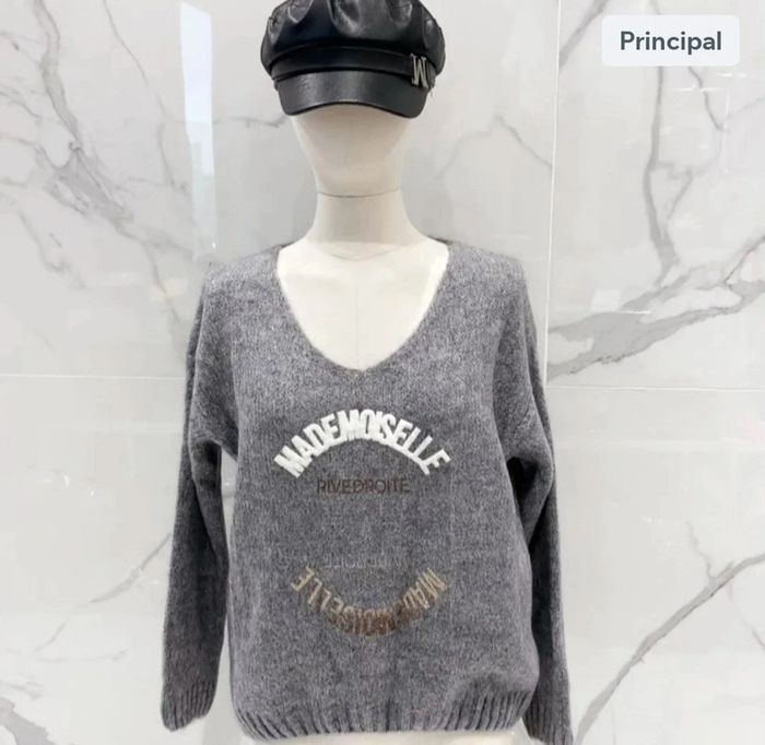 Pull col V en laine et mohair Taille unique jusqu'au 44