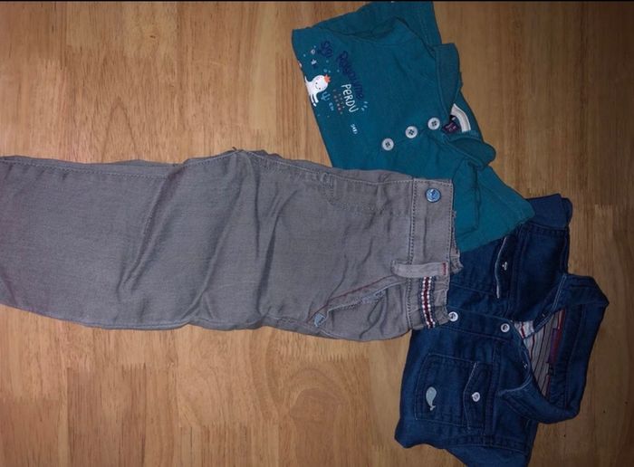 1 tee shirt manche longue Une chemise en jean Et un pantalon Sergent major 9 mois Neuf sans étiquettes juste lavé