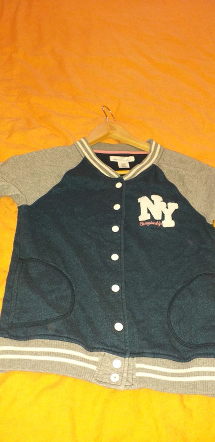 Très peu porté. Fermeture à boutons pressions. Gris et bleu