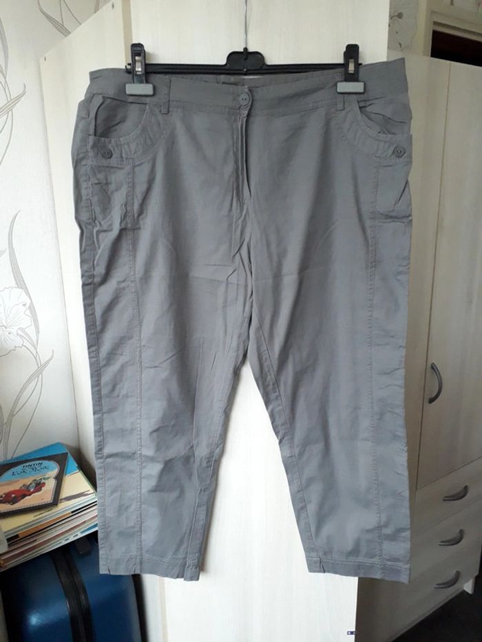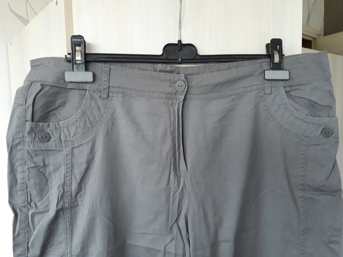 Pantalon gris en coton et élasthanne plutôt fin, bon état mais légères peluches à l'intérieur des cuisses. Mesures à plat : largeur taille 49cm, largeur hanches 60cm, largeur cuisse 36cm, ceinture devant jusque entrejambe 33cm, longueur 90cm #lavinia02taille48 Mes remises à partir de 3 articles : - 20% sur les vêtements, chaussures, livres, jouets (sauf jeux video) - 10% sur la musique, jeux video, dvd,figurines et autres articles divers