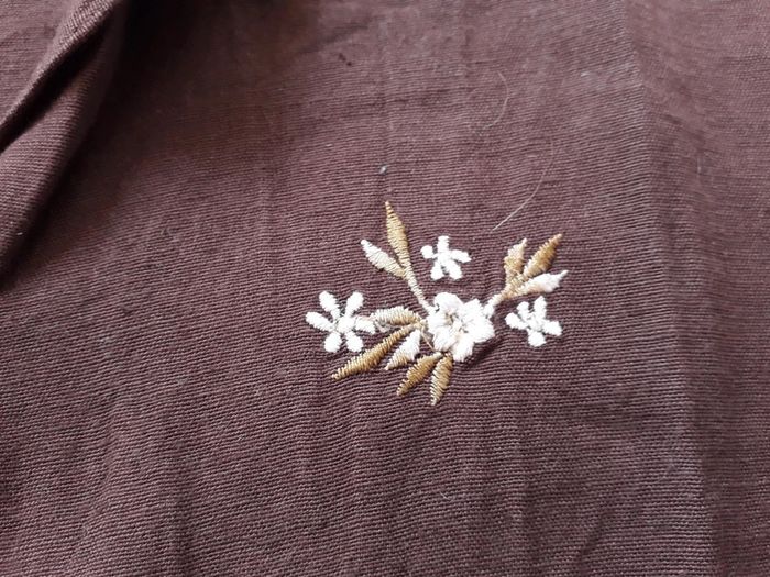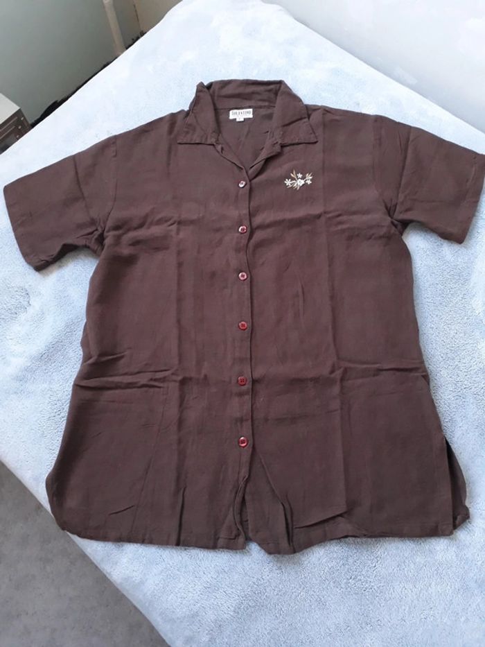 Chemise marron en coton viscose et lin, taille L 44 ou 46 largeur entre aisselles 55cm longueur 75cm, largeur en bas 58cm vintage 1ere main années 90 #lavinia02taille44 #lavinia02taille46 #lavinia02fringuesvintage années90 Mes remises à partir de 3 articles : - 20% sur les vêtements, chaussures, livres, jouets (sauf jeux video) - 10% sur la musique, jeux video, dvd,figurines et autres articles divers
