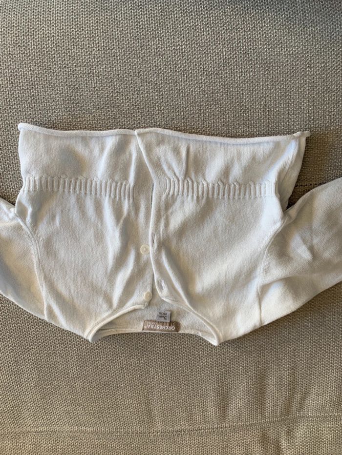 Gilet blanc 3 ans Taille court au dessus du ventre Très bon état jamais porté Orchestra