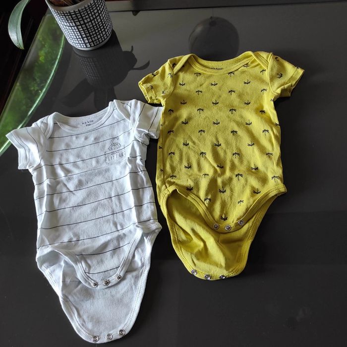 Lot 2 bodies manches courtes 9 mois Jaune et blanc très bon état Kiabi De
