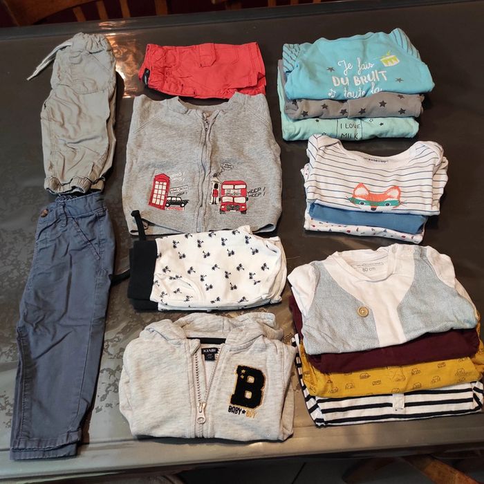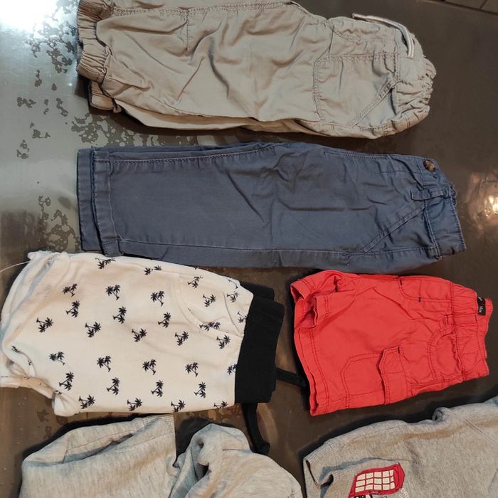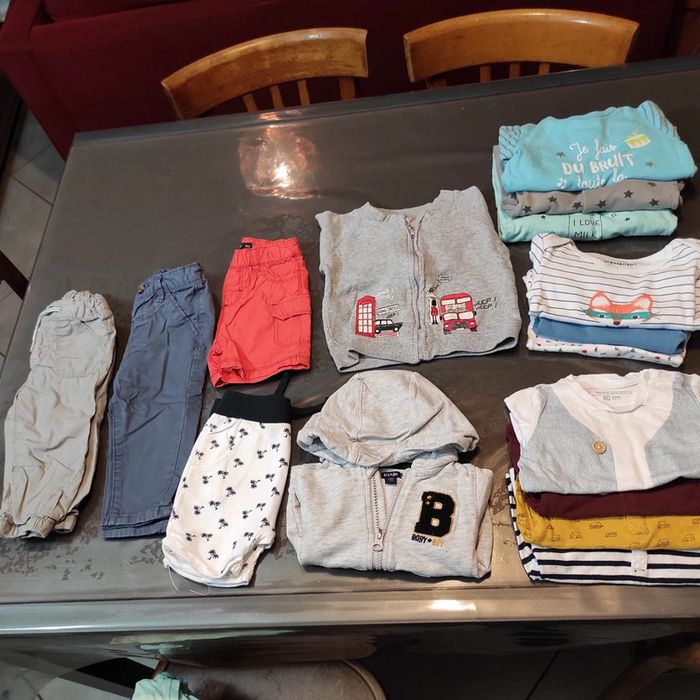 Lot vêtements 12 mois comme neuf 2 pantalons 2 shorts 2 gilets 4 t-shirts manches longues 3 bodies manches longues 3 pyjamas fins légers manches longues Marque Kiabi in extenso u tout petits tex boîte à malice LE LOT 20€00 Possibilité de faire photos a l unité
