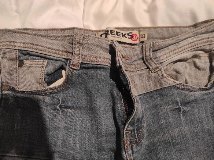 Jeans 12 ans creeks ou XS Très bon état Effet patchwork Taille 33 cm/ longueur totale 92 cm et longueur entrejambe 72 cm #creeks #jeans
