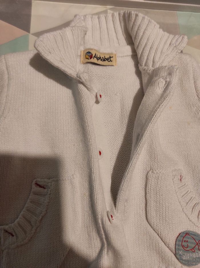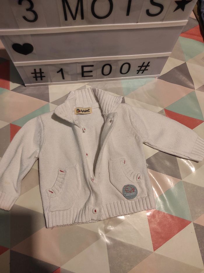 Gilet alphabet 3 mois Blanc TBE