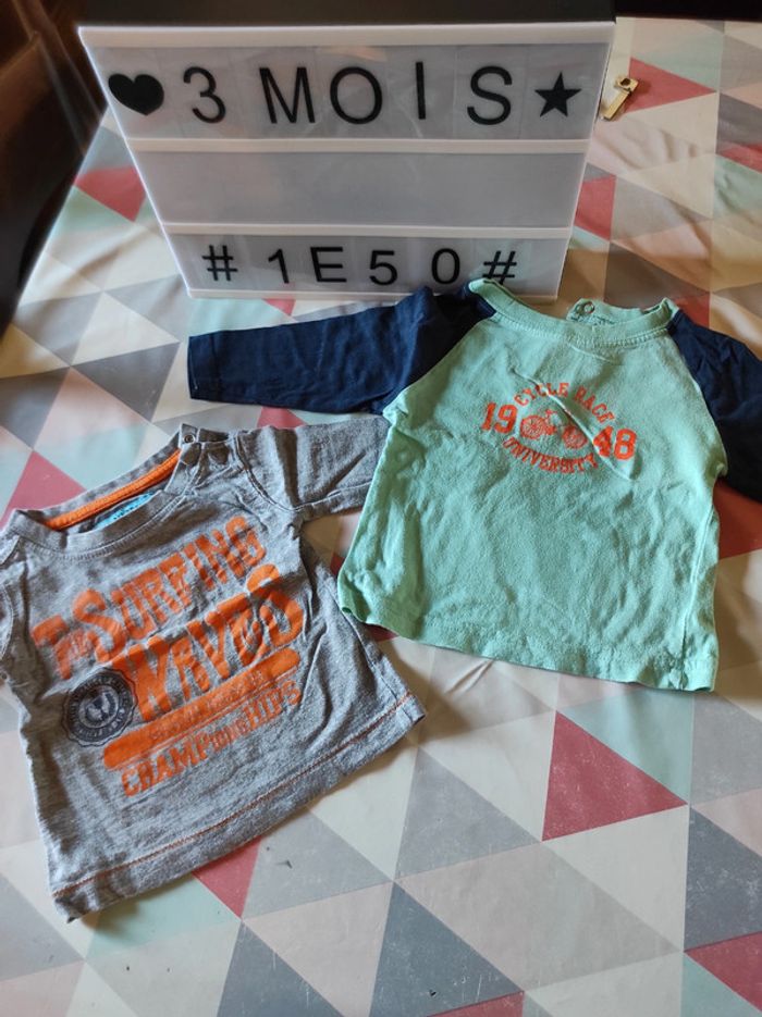 Lot 2 t-shirt manches longues 3 mois - photo numéro 3