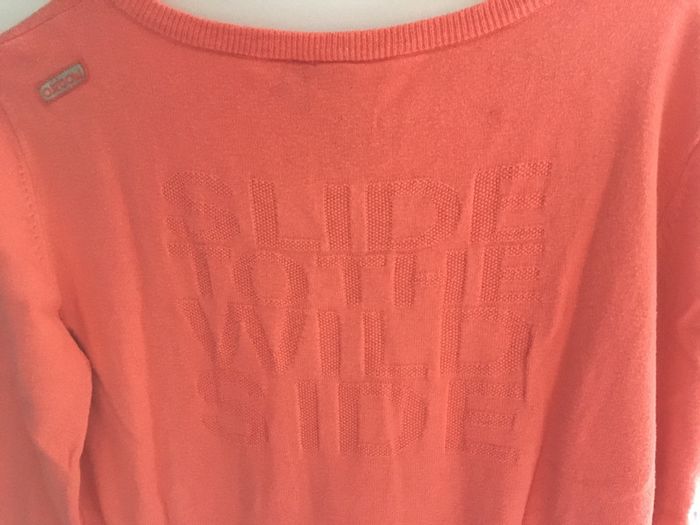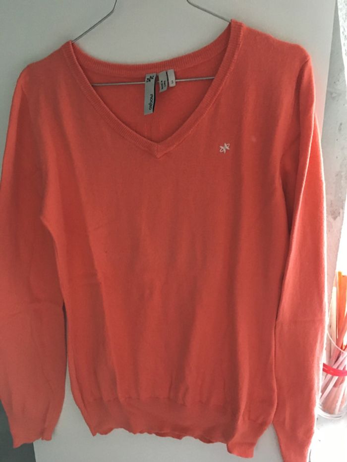 Pull en coton oxbow Col en V Couleur corail / orangé Message noté dans le dos très peu porté taille grand