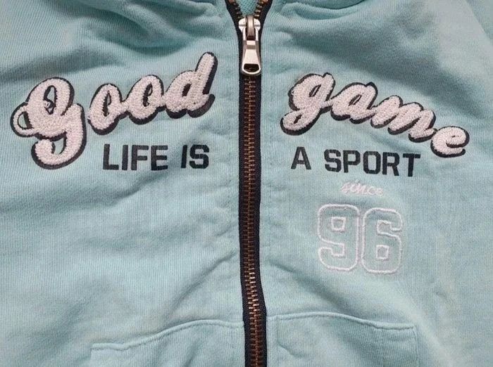 Sweat zippé à capuche bleu ciel Okaïdi 3 ans Bon état, petites tâches à l'avant en bas (voir photos) #flagadajones3ans #okaidi3ans #gilet3ans #giletokaidi3ans C1N