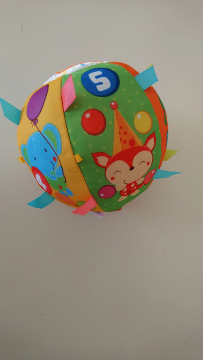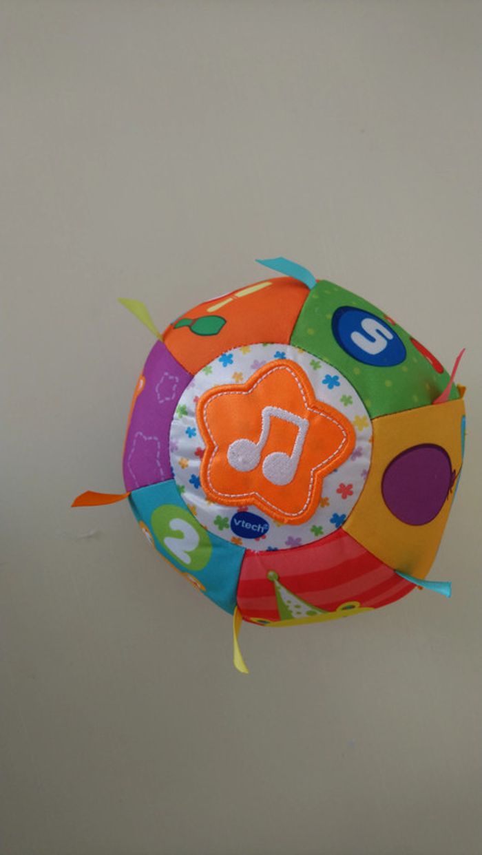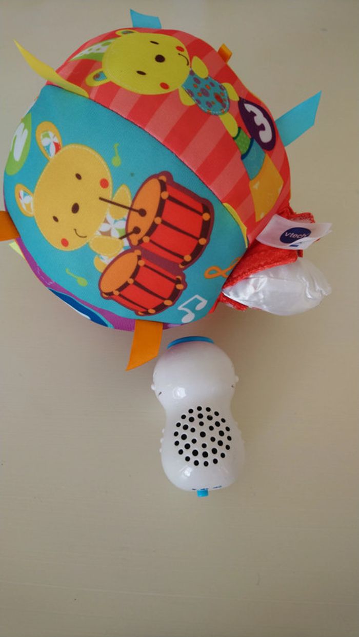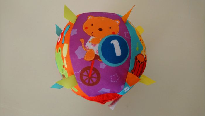 Une jolie balle colorée interactive et musicale. Une balle toute légère qui déclenche chansons et bruits rigolos dès qu'on la lance ou qu'on la fait rouler. Un gros bouton orange en forme d'étoile sur le dessus de la balle pour déclencher des chansons, mélodies et apprentissages sur les animaux et les premiers chiffres. 6 faces pour apprendre les chiffres avec les petits copains au cirque. 15 mélodies et 5 chansons. Lavable en machine.
