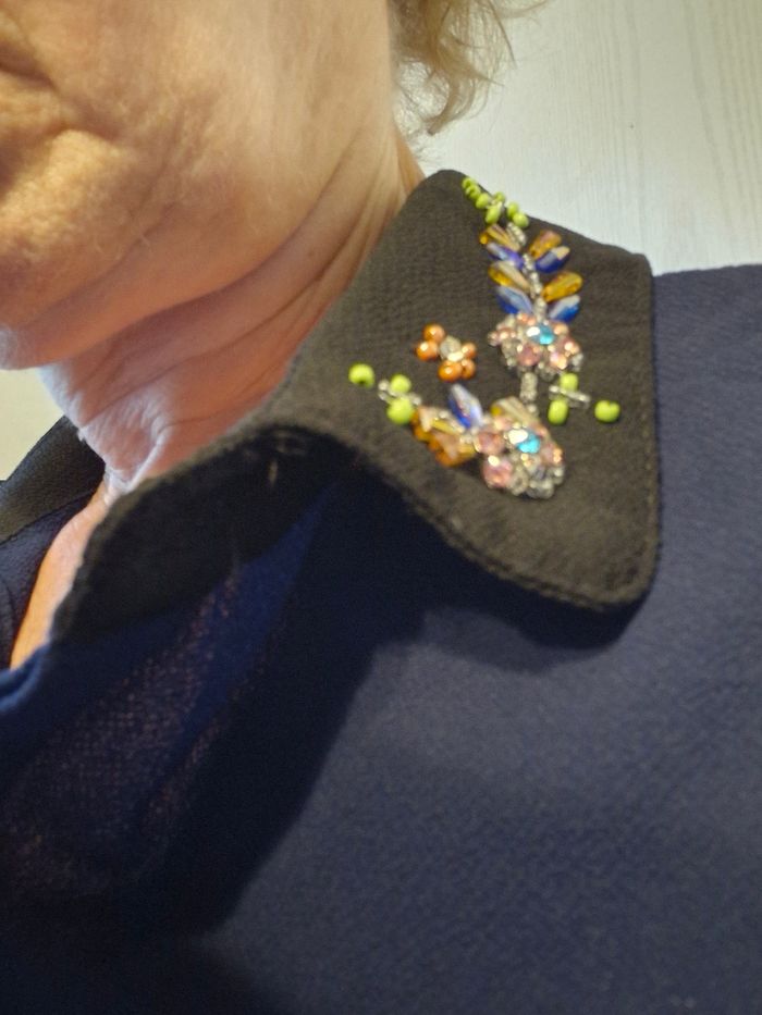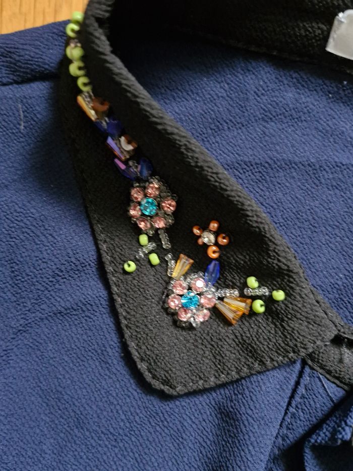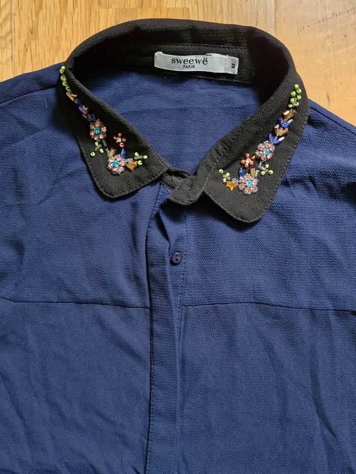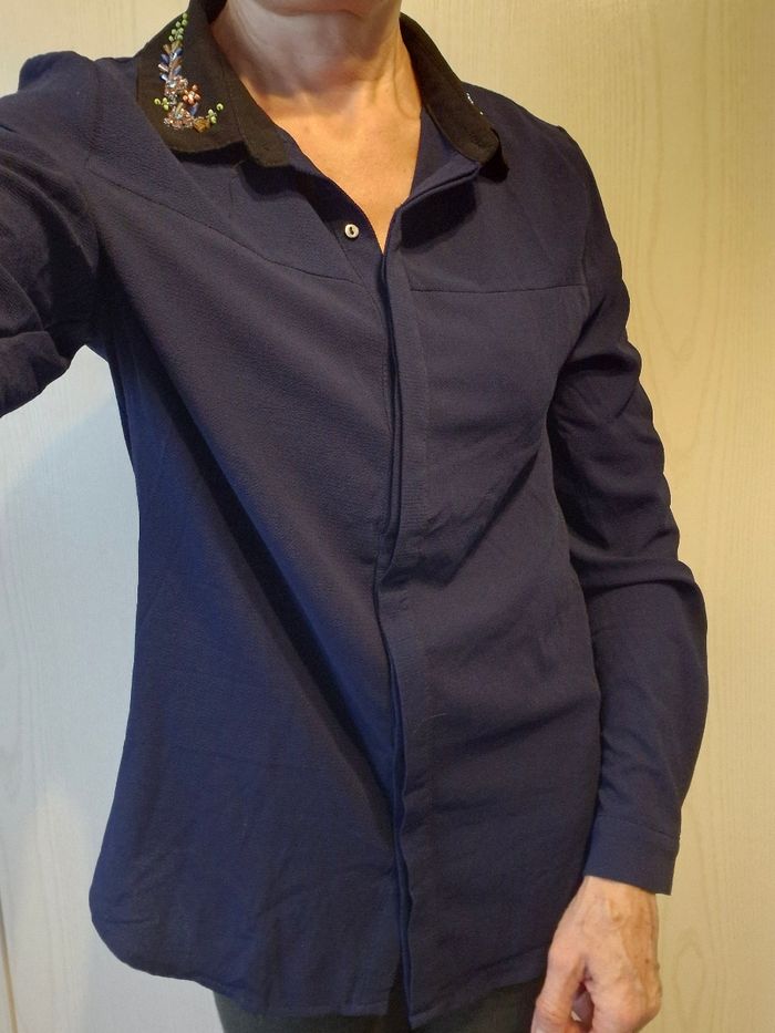 Neuf. Porté 1 fois. Perles brodées au col. Longueur 65 cm. Largeur devant sous bras 47 cm. Largeur épaules devant 41 cm. Polyester.