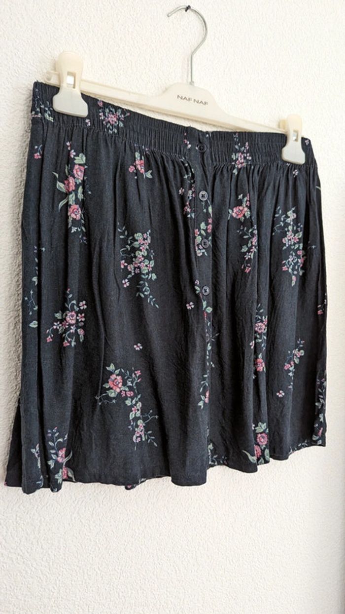 Jupe gris foncé à fleurs Marque Pull & Bear Longueur 41 cm Largeur 38 à 58 cm (taille élastique)