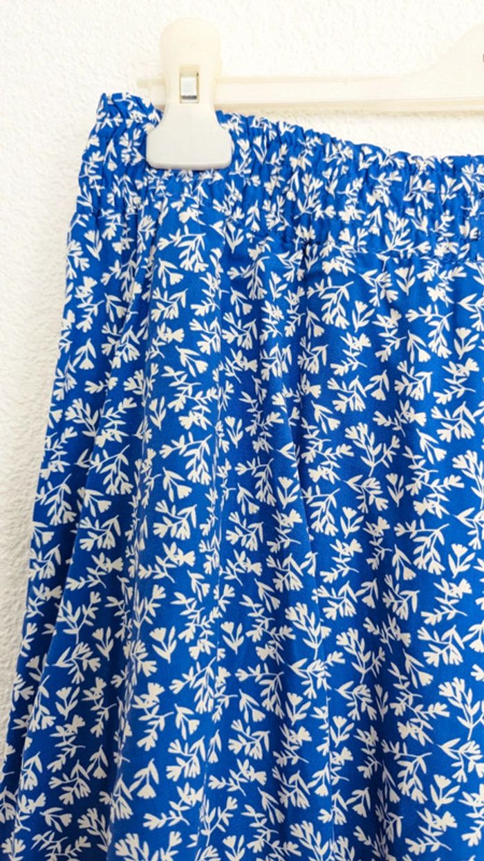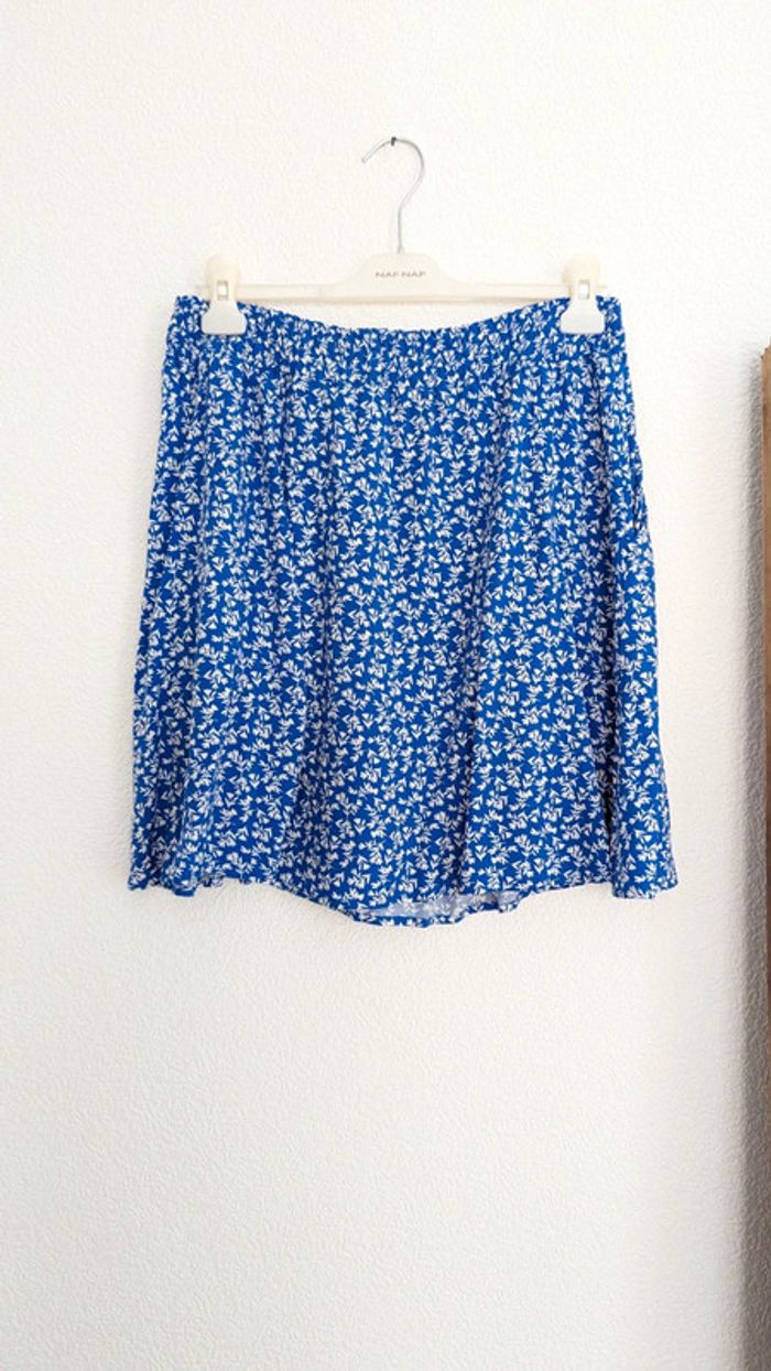 Jupe bleue à fleurs blanches Marque Kiabi Longueur 51cm Largeur 41 à 50 cm (taille élastique) Portée une seule fois L'étiquette indique M mais je la mets en L car elle taille grand