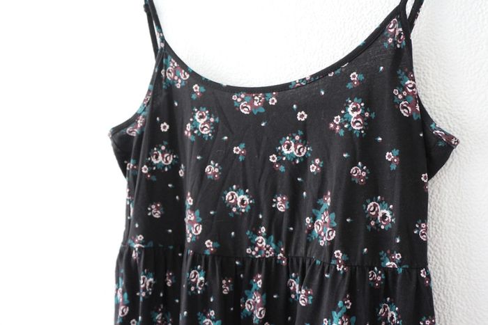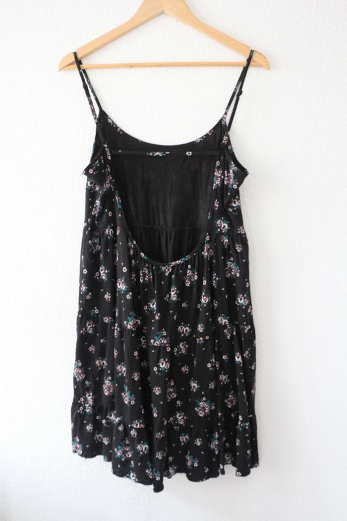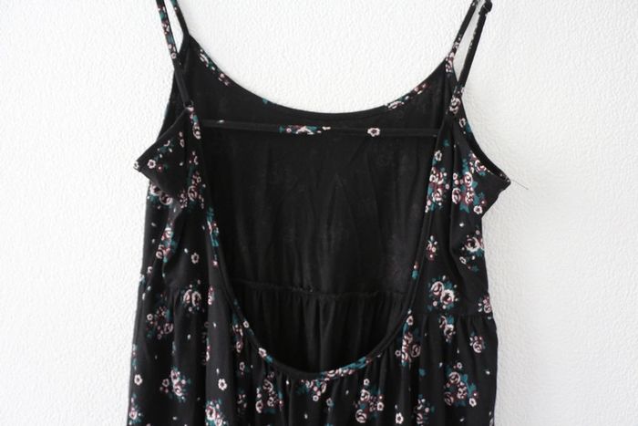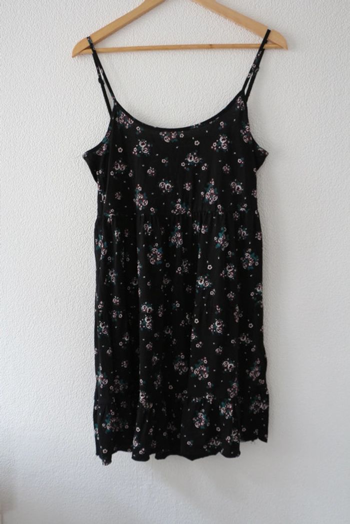 Robe noire à fleurs dos plongeant Très agréable à porter Marque Clockhouse Largeur poitrine 45cm Longueur 89cm