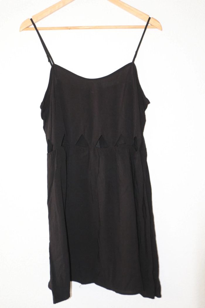 Robe courte noire Petites ouvertures triangulaires au niveau du ventre Marque H&M Largeur 46cm Longueur 85cm
