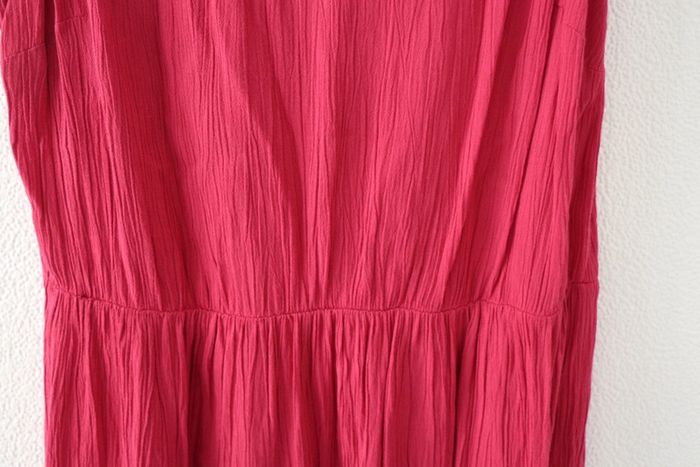 Robe framboise (rose foncé) avec taille élastique et nœuds sur les épaules Fluide et agréable à porter Marque Even&Odd Largeur poitrine 47cm Largeur taille 38cm Longueur 90cm
