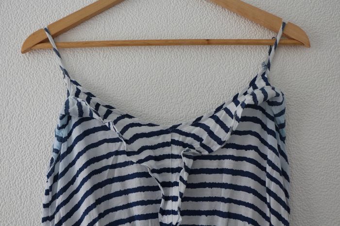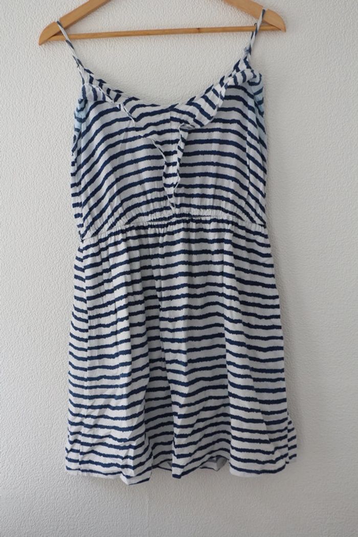 Petite robe marinière entièrement doublée donc non transparente Marque pimkie Largeur poitrine 43cm Largeur taille 39cm (élastique) Longueur 85cm