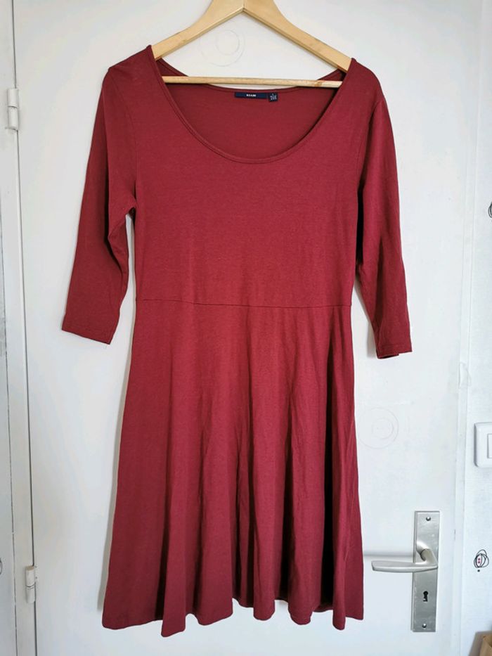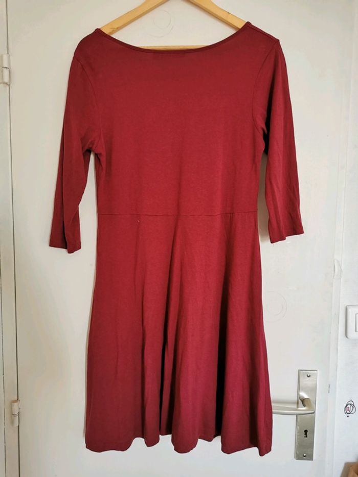 Robe fluide bordeaux manches 3/4 de Kiabi Pour la couleur voir la photo 3 Largeur aisselles : 43cm Largeur taille : 40cm Longueur : 94cm