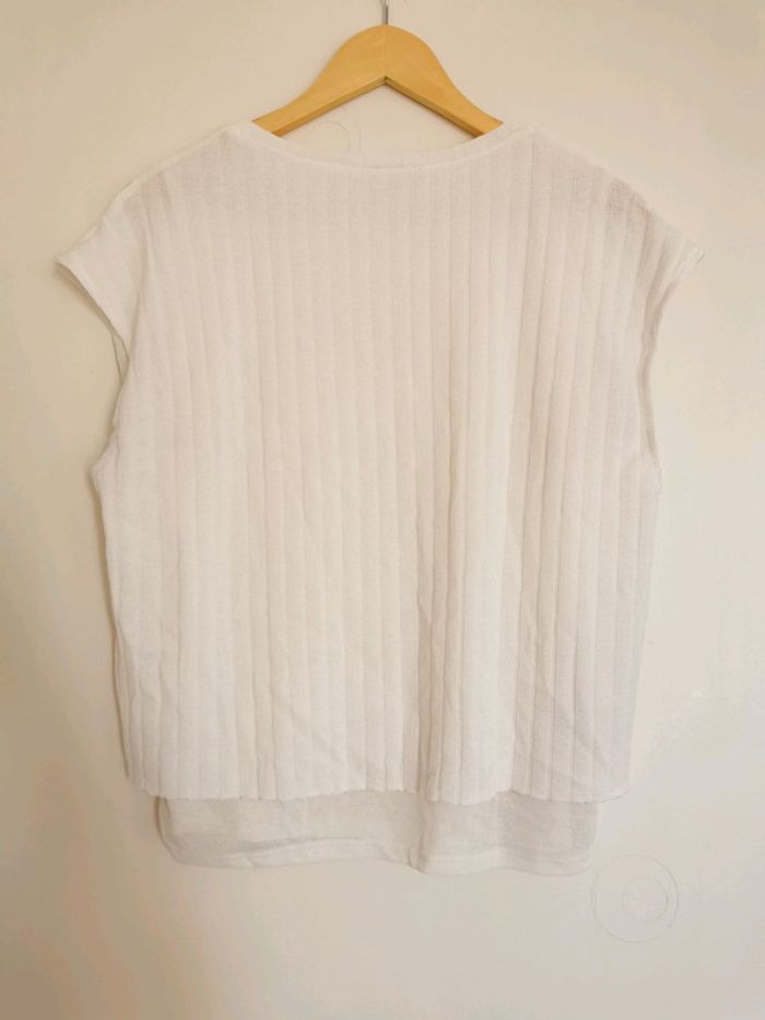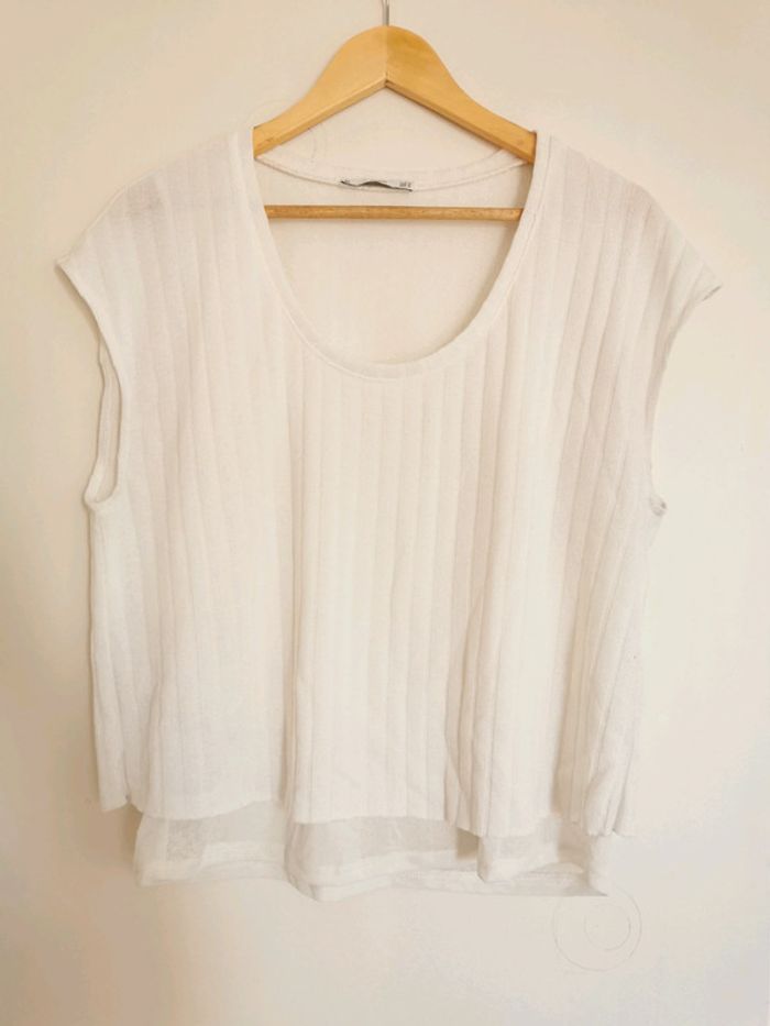 T-shirt sans manches blanc Mango Matière fluide assez épaisse Doublure plus longue que la première épaisseur Non transparent Jamais porté Largeur : 52cm Longueur : 55cm (doublure 60cm)