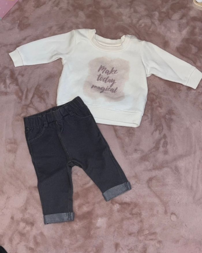 Lot comprenant un pull primark 0/3mois et un pantalon kiabi 3mois