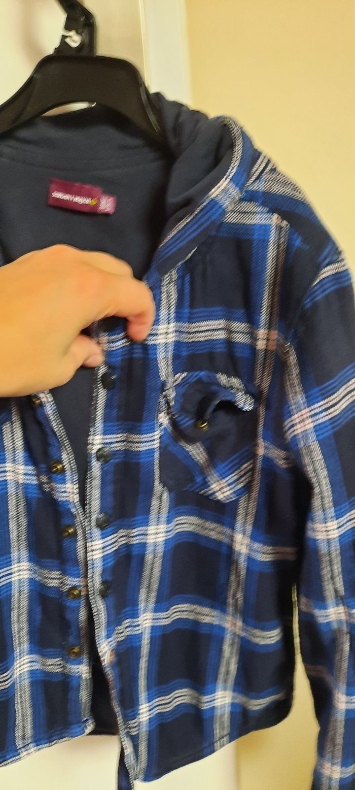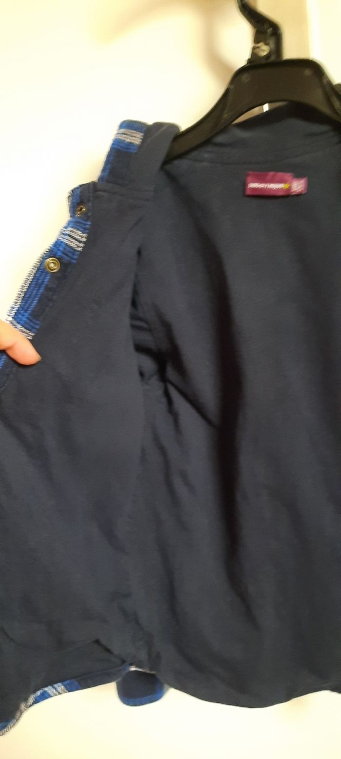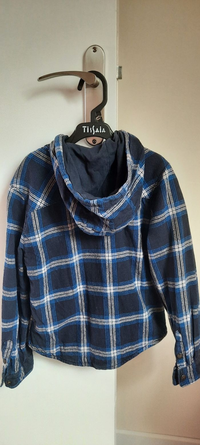 Veste garcon à capuche sergent major taille 8 ans/128 cm en très bon état, peu portée. 2 poches au niveau de la poitrine, boutons pressoir sur le devant et au niveau des manches. Veste 100% coton, doublure 100% coton.