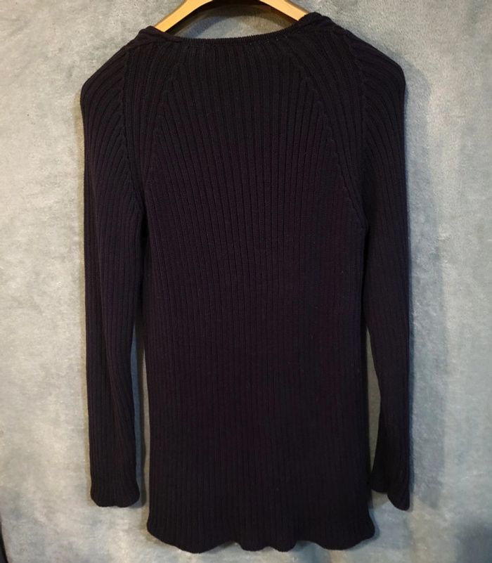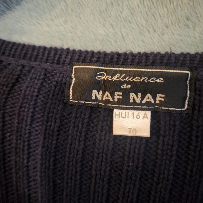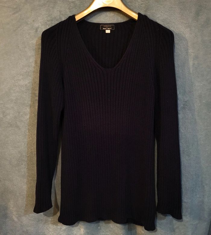 Pull Tunique Côtelé - Col en V - Bleu Marine 🧥 Naf Naf - Taille S