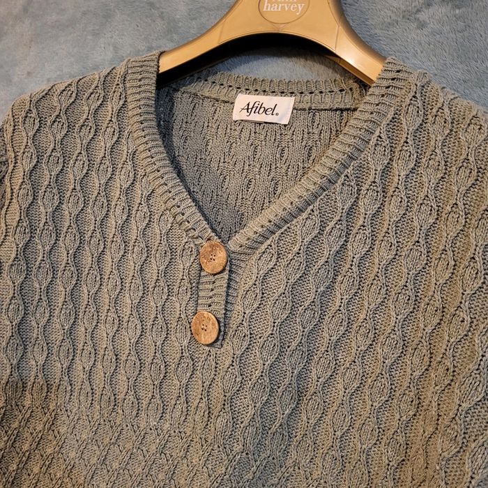 Pull Vintage Marque Afibel Taille 46 / 48 Col en V Manche 3/4 50% Acrylique 50% Coton ⚠️ Petite tâche verte - A détacher ⚠️ #PullSweatCeline3240 #VêtementsCeline3240 #crewneck #sweat #felpa #trui #maglione #sueter #sweatshirt #sweater #pull #Pull4 #pullover #vintage #afibel #taille4648