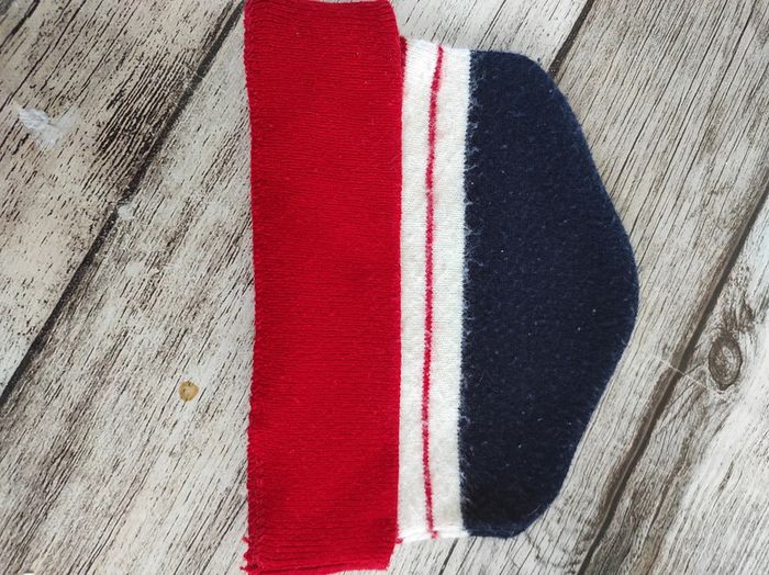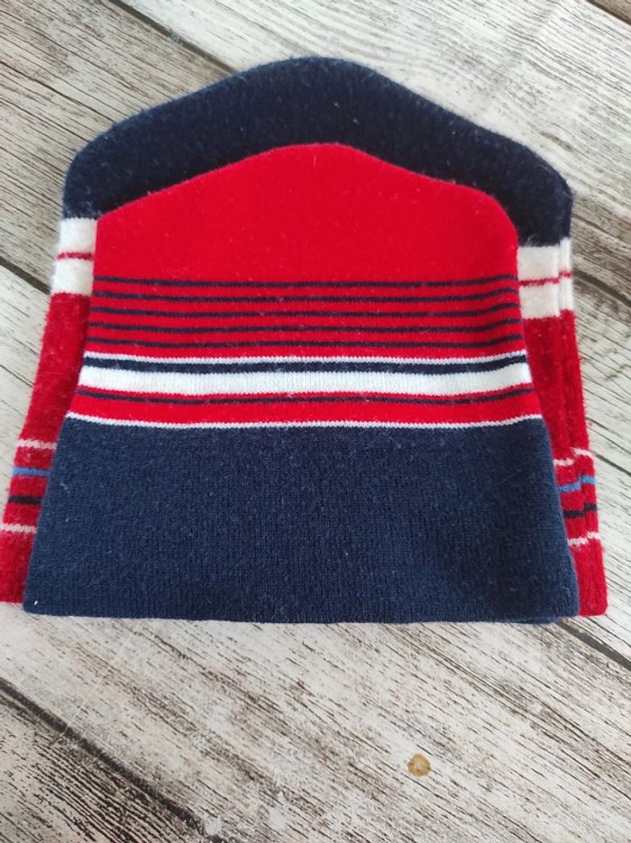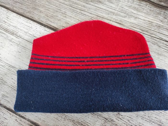 Lot de 2 bonnets en laine acrylique Coloris rayer rouge/bleu marine/ et blanc Pas abîmé ni taché 1 le grand tour de tête 45,5cm 1 le petit tour de tête 40cm