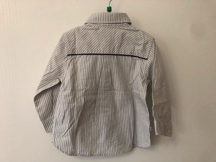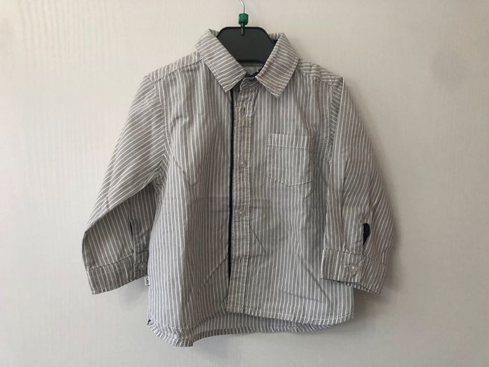 Chemise manches longues garçon qui se ferme avec des boutons Chemise rayée blanc, bleu, gris Marque Obaïbi Taille 12 mois, 74cm 100% coton #elmomo57_garçon12mois #elmomo57_garçon