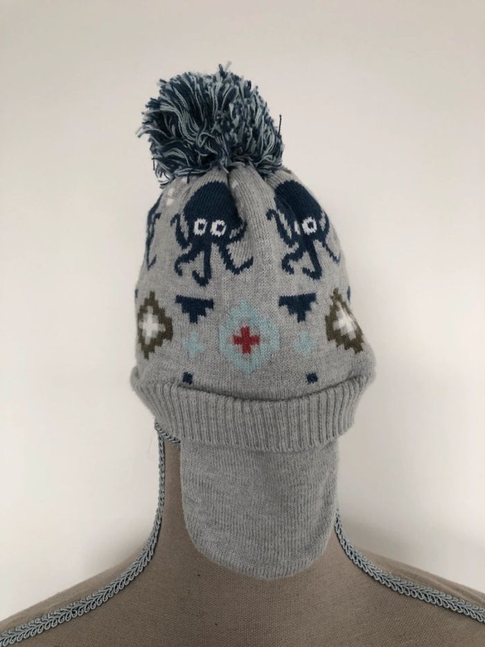 Joli bonnet bébé garçon avec cache oreilles et pompon sur la tête. Motif pieuvre Tient bien chaud Marque Absorba Taille 6-9 mois, 44cm #elmomo57_garçon6mois #elmomo57_garçon9mois #elmomo57_garçon