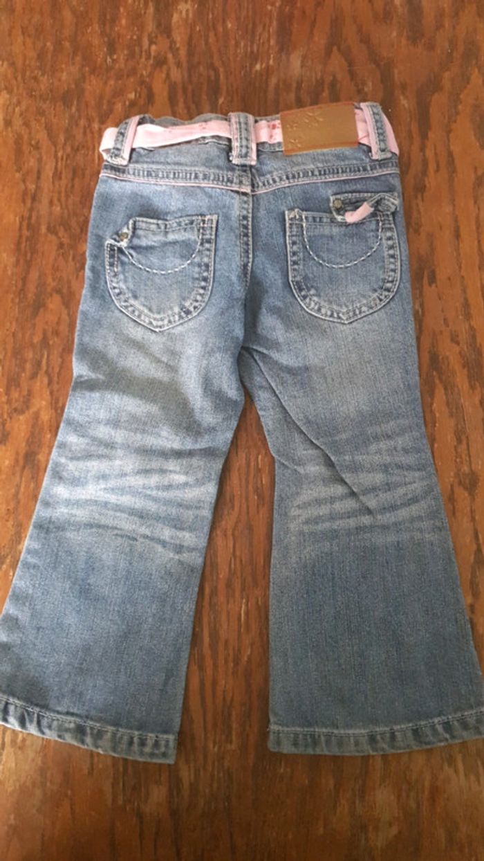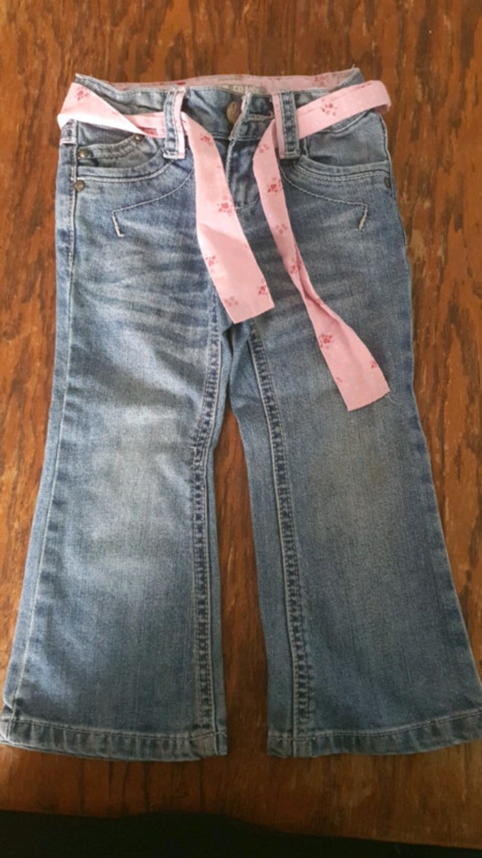 Jeans taille 2 ans. Avec petite ceinture rose en tissu. Excellent état. #fille2ansprescou20