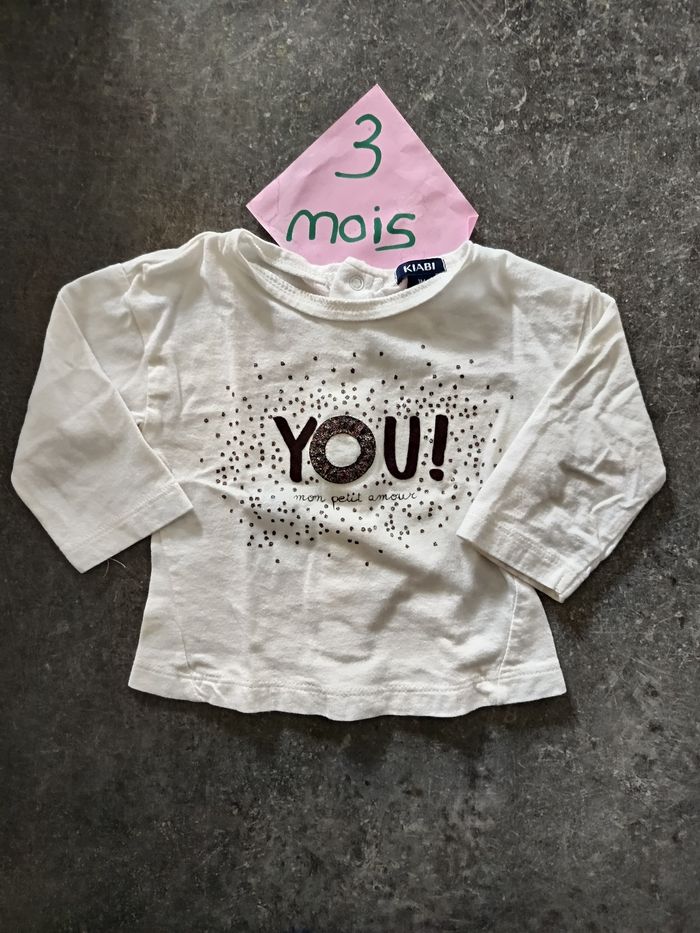 T-shirt manches longues, Blanc cassé avec inscription "YOU ! mon petit amour" pailleté, Très bon état, peu porté ! Taille 3 mois