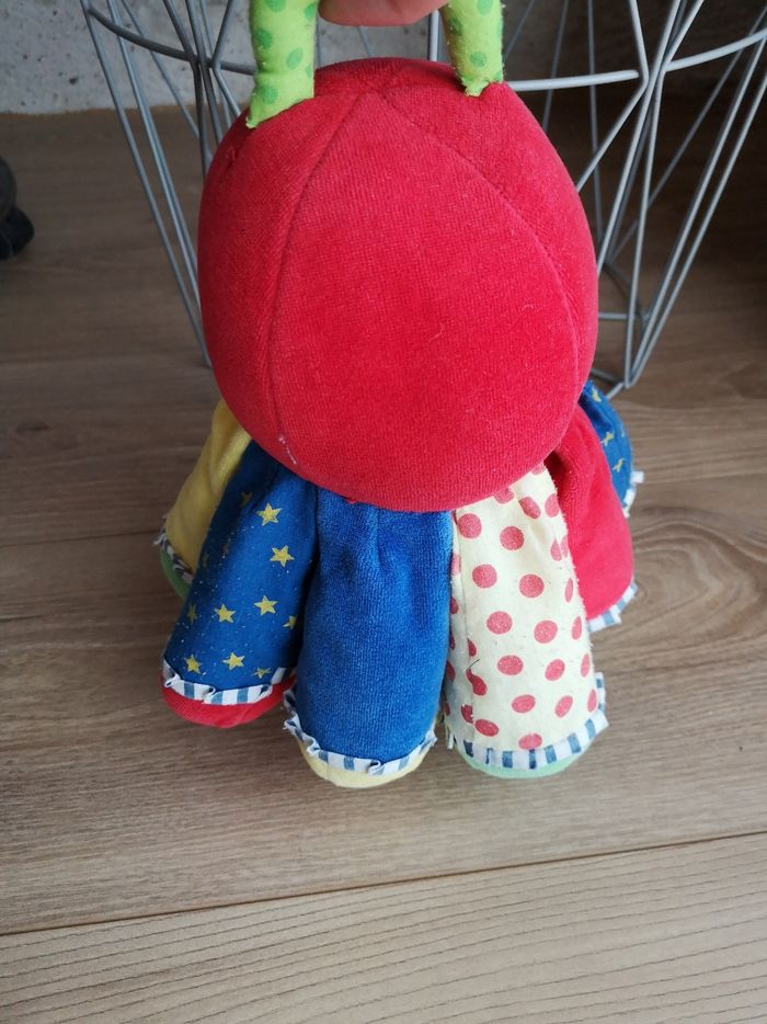 A été utilisée Le tissu à tendance à boulocher sur certaine tentacules Différentes textures Grelot à l'intérieur