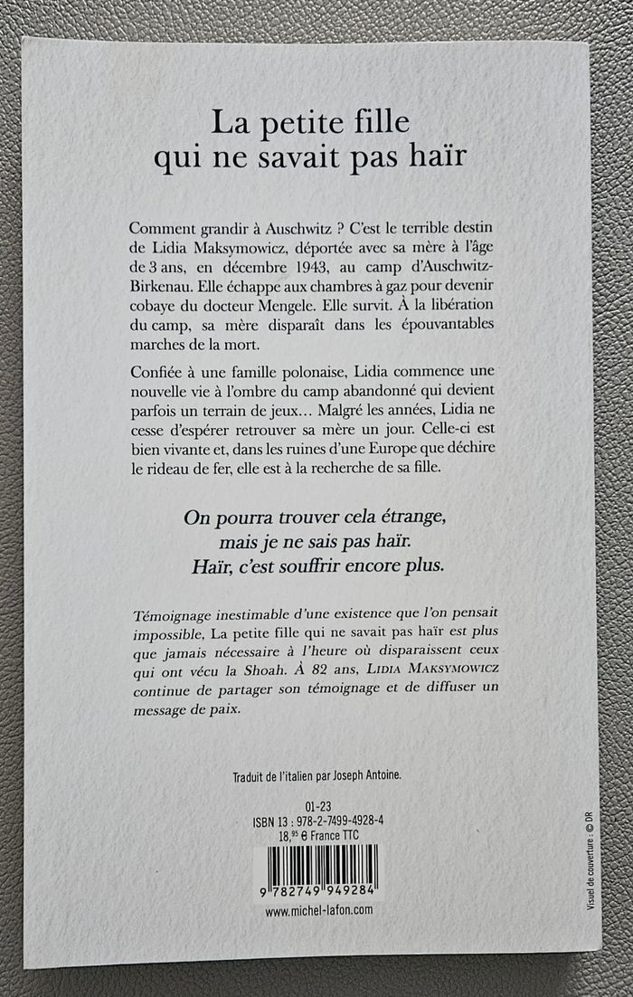 Vend livre La petite fille qui ne savait pas haïr de Lidia Maskymowicz et Paolo Rodari. Une enfance à Auschwitz. Très bon état
