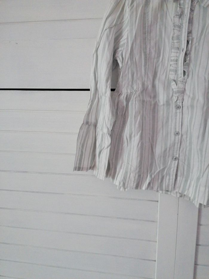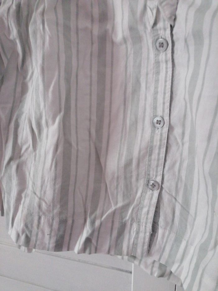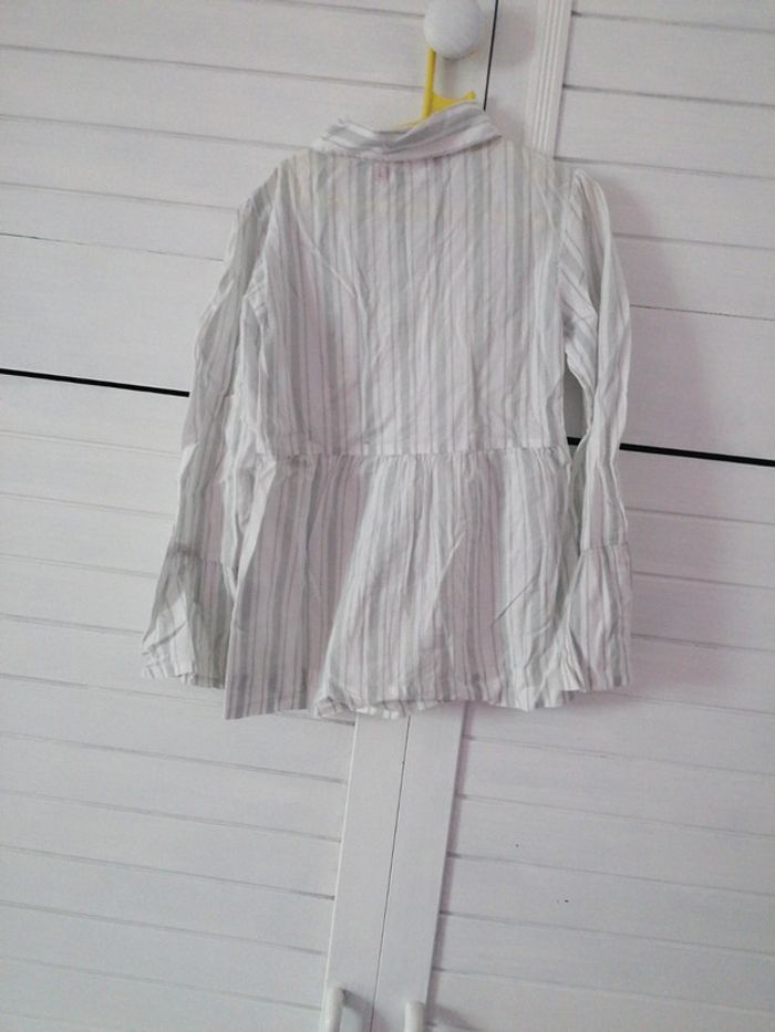 Chemisier 6 ans, rayé gris et manches évasées, marque tissaia, très bon état