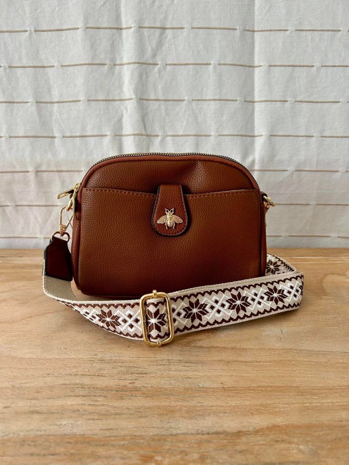 Sac à main à bandoulière, modèle Maya, coloris marron. Double fermeture éclair sur le dessus, poche avant et insigne en forme d'abeille avec large bandoulière réglable. Dimensions : 21 x 7 x 16 cm La jolie Charronnaise est une boutique d'accessoires de mode. Tout les articles sont neufs. Je n'accepte pas les offres, je vous remercie pour votre compréhension. Site web : la-jolie-charronnaise.sumupstore.com Facebook : La jolie Charronnaise Instagram : la.jolie.charronnaise