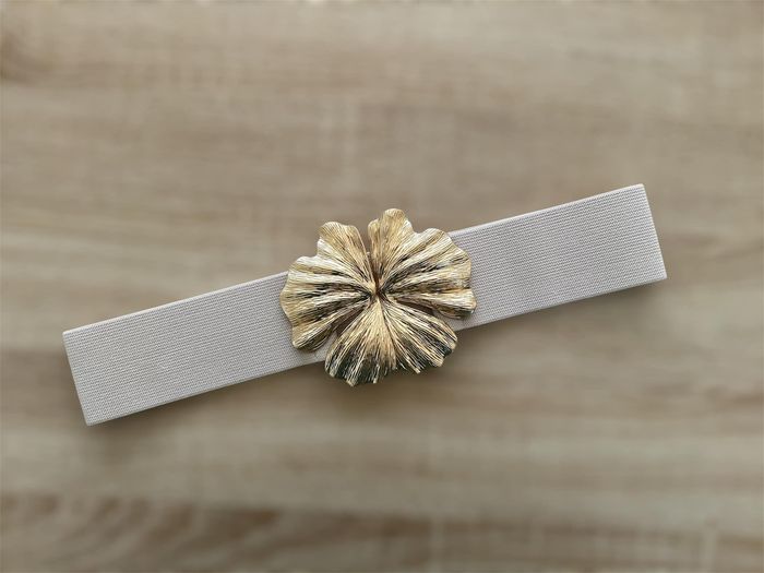 Ceinture élastique coloris beige avec fleur dorée en métal Taille unique, la ceinture s'adapte à toutes les taille grâce à son élastique La jolie Charronnaise est une boutique d'accessoires de mode. Tout les articles sont neufs. Je n'accepte pas les offres, je vous remercie pour votre compréhension. Site web : la-jolie-charronnaise.sumupstore.com Facebook : La jolie Charronnaise Instagram : la.jolie.charronnaise