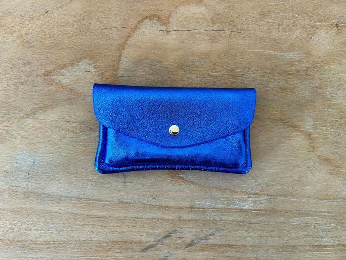 Porte monnaie en cuir bleu roi métallisé grand modèle - photo numéro 1